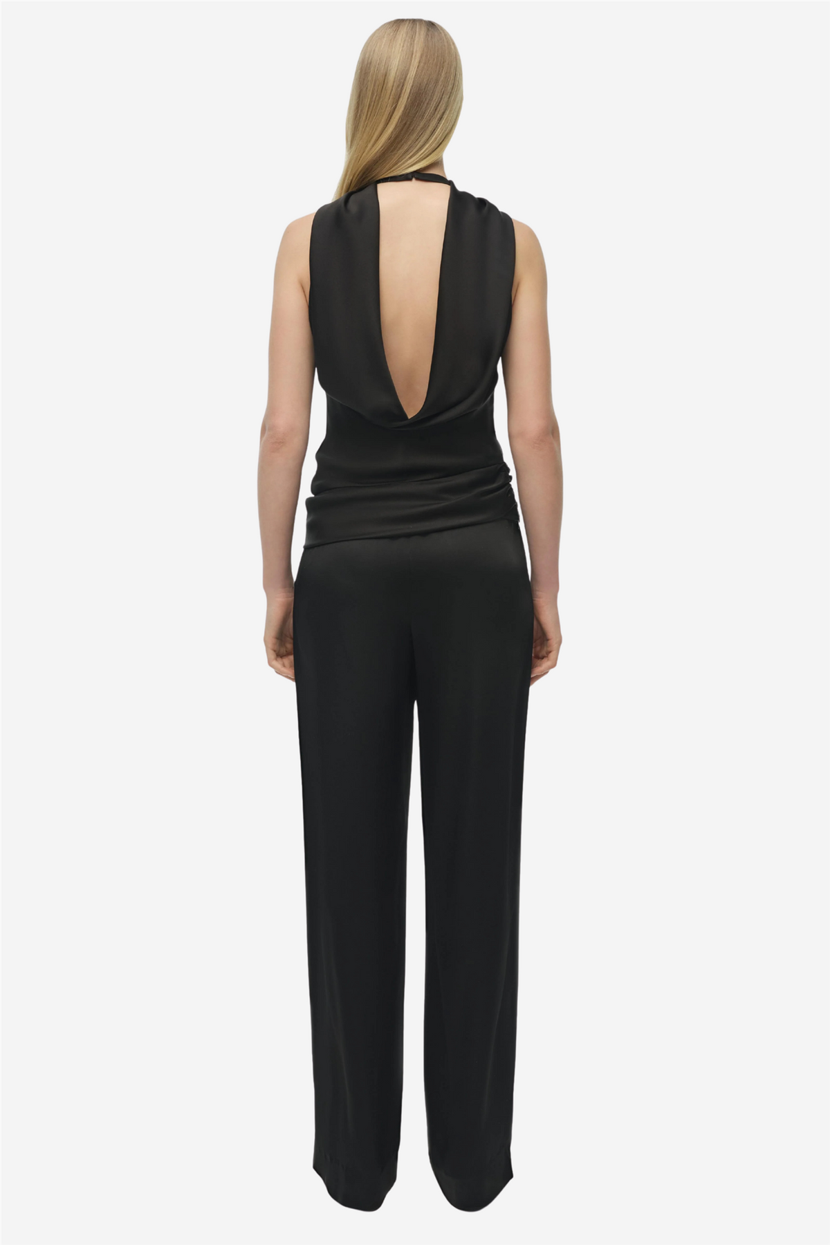Samira Satin Cape Top fra Simkhai er en elegant topp i luksuriøs vevd satin med et halter-inspirert cape-design. Rynkede detaljer ved kanten skaper flyt og bevegelse, som balanserer den skulpturelle silhuetten. Perfekt til både bukser og skjørt for et sofistikert og moderne uttrykk.