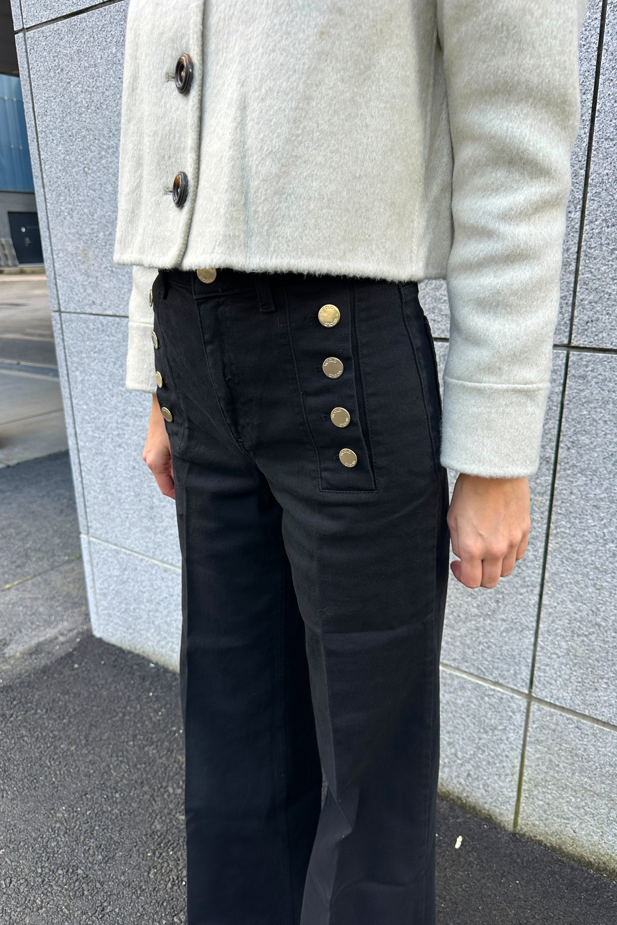 Giudith Nero High Waist Wide Leg Jeans fra ViCOLO. Denne elegante denimjeansen fra ViCOLO kombinerer klassisk stil med moderne detaljer. Med en flatterende høy midje og en vid passform gir den både komfort og en sofistikert silhuett. De dekorative gullknappene tilfører et eksklusivt preg, perfekt for både hverdagsbruk og mer oppdressede anledninger.