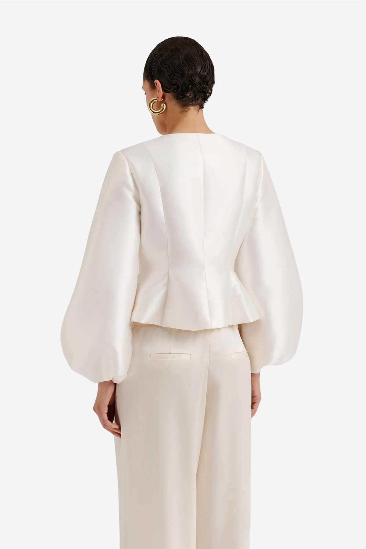 Vendela Balloon Sleeve Top fra Malina er en feminin bluse med markert midje og voluminøse ermer som skaper en elegant peplum-silhuett. Skjulte hemper i front gir et rent og sofistikert uttrykk.