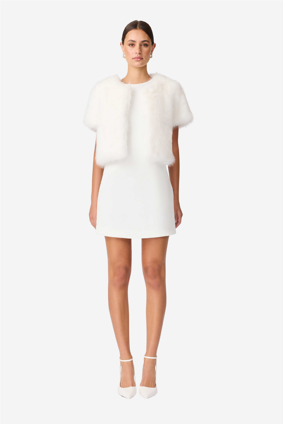 Lucyna Bolero er en elegant og allsidig bolero i myk og behagelig, fluffy polyesterkvalitet. Med sin avkortede lengde og åpne front gir den et sofistikert og luksuriøst uttrykk uten å virke tung, perfekt for lag-på-lag-styling med kjoler eller enkeltopper. Denne boleroen tilfører en moderne og feminin touch til antrekket uten å gå på bekostning av komfort.