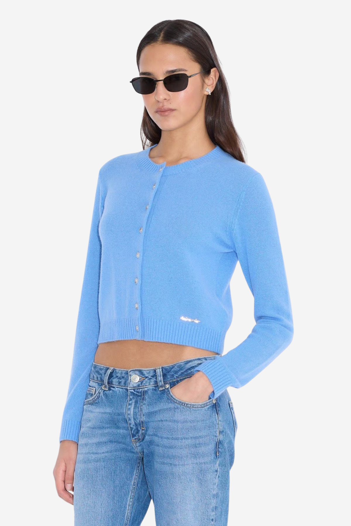 W. Cashmere Cardigan fra Holzweiler. Luksuriøs cardigan i 100 % kasjmir med smal, croppet passform. Klassisk rund hals, knappestolpe og ribbestrikkede kanter. Detaljert med et avtagbart metall-logo-emblem – et eksklusivt plagg som løfter ethvert antrekk.