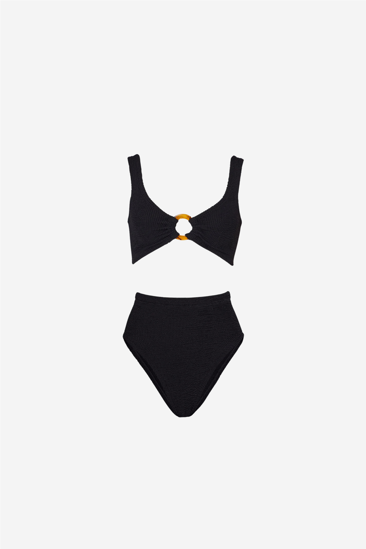 Nadine Bikini fra Hunza G har en flatterende passform og stilrene skilpaddeinspirert ringdetaljer kombinerer denne bikinien en tidløs silhuett med et hint av diskret luksus. Et design som passer like godt til en avslappende dag på stranden som ved bassengkanten.