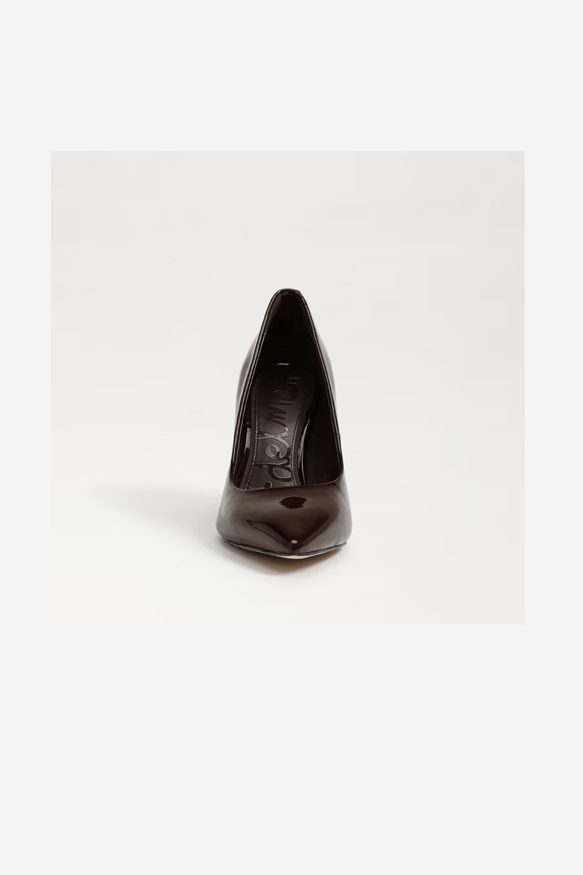 Hazel Pointed Toe Pump fra Sam Edelman er en tidløs og feminin pumps i blankt brunt patentlær. Med spiss tå og elegant silhuett gir den et klassisk uttrykk som passer like godt til festkjolen som til dressbukser på jobb. En allsidig favoritt som løfter ethvert antrekk med en sofistikert glans.