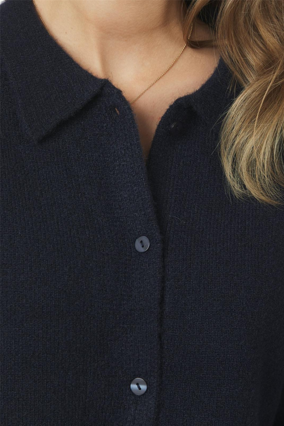 Cunna Knit Blouse fra Neo Noir. Kortermet, strikket bluse med elegant krage og knappestolpe i front. Et allsidig plagg som løfter både hverdags- og jobbantrekket.