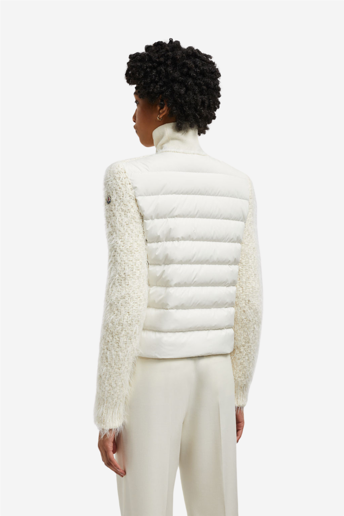 Padded Wool Cardigan fra Moncler er en cardigan i ullblanding som kan brukes året rundt. Denne polstrede cardiganen blander klassisk eleganse med varme og komfort. Strikken er laget av en tungvektsblanding av merinoull, sammenvevd med metalltråd for en subtil gnist. Med en dunfylt rygg er den ideell som en jakke når temperaturene begynner å synke.