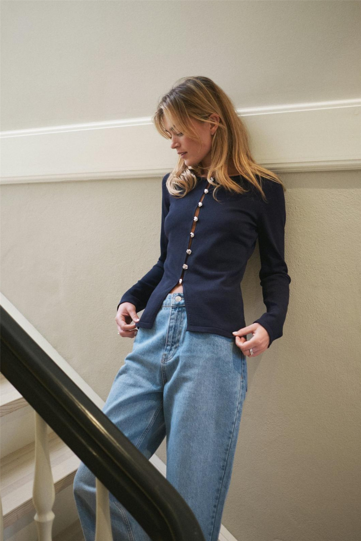 Teller Knit Blouse Black fra Neo Noir. Tynn strikket cardigan med dekorative knapper for en veldig elegant look.