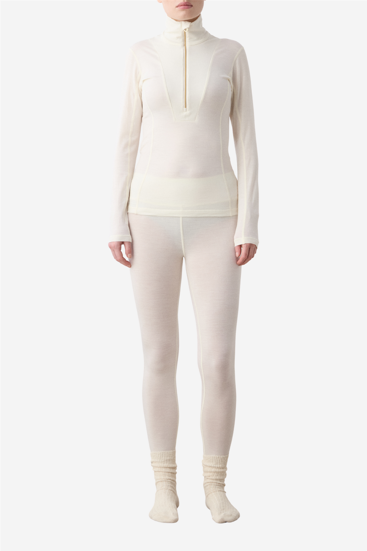 Snø Leggings fra We Norwegians. Disse luksuriøse base layer-leggings er laget av favorittgarnet fra Südwolle – superfine merinoull (17,5 mikron) blandet med Creora-Eco-Soft for ekstra stretch og komfort. Det lette, pustende single jersey-stoffet føles som et andre hudlag og gir maksimal bevegelsesfrihet.