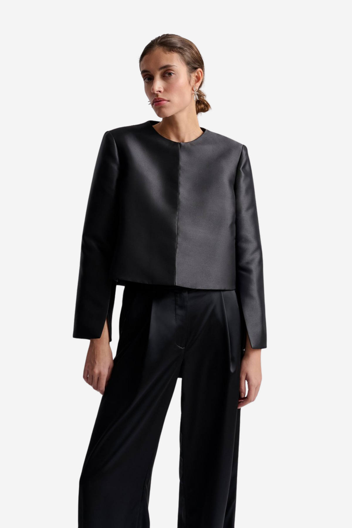 Ruthie cropped long sleeve blouse fra Malina. Langermet bluse med splittdetaljer på ermene.