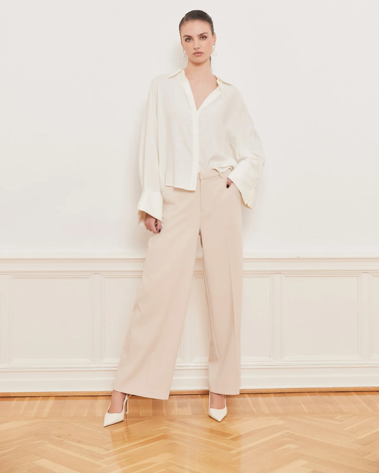 Reign Tailored Extra Wide fra Iben. Reign Tailored Extra Wide blir raskt en favoritt i enhver garderobe. Disse skreddersydde dressbuksene har midwaist og rette, vide bein, inspirert av våre bestselgende Reign Jeans. Designet fullføres med pressede folder, skrå lommer og en skjult glidelåslukking.