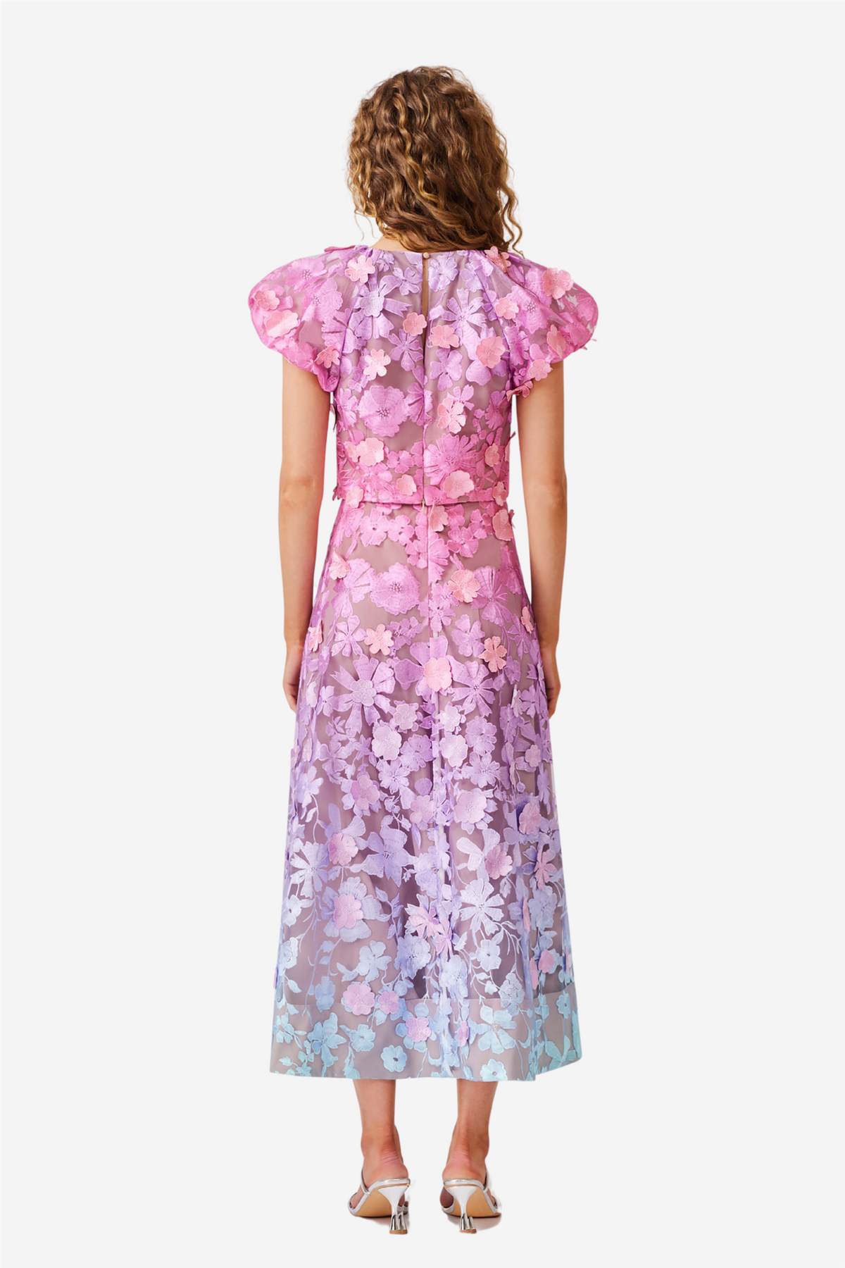 Elle Skirt fra Elliatt er en drømmende kombinasjon av rosa, lilla og blå nyanser i et vakkert ombré-design. Skjørtet er laget i eksklusiv 3D-blondestoff med florale detaljer som gir et delikat og samtidig iøynefallende uttrykk.  Perfekt til sommerfester, dagarrangementer eller kvelder ute – et skjørt som kombinerer tidløs romantikk med moderne eleganse.