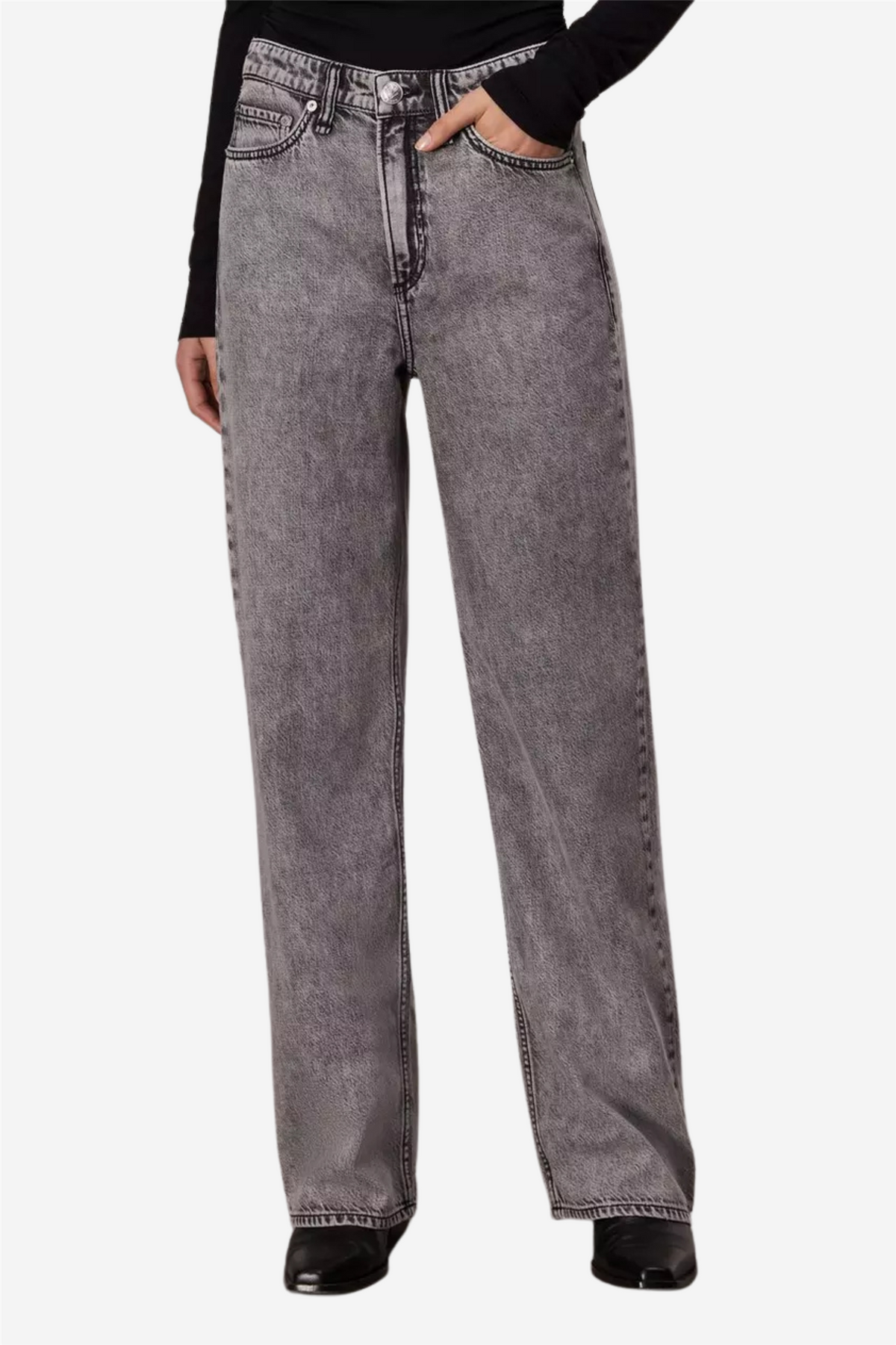 Laget av deres featherweight-denim som er usedvanlig mykt og superlett, med et ledig fall. Tilgjengelig i Slate Grey, en mediumgrå acid wash. Buksen har mellomhøyt liv, vide ben, full lengde.