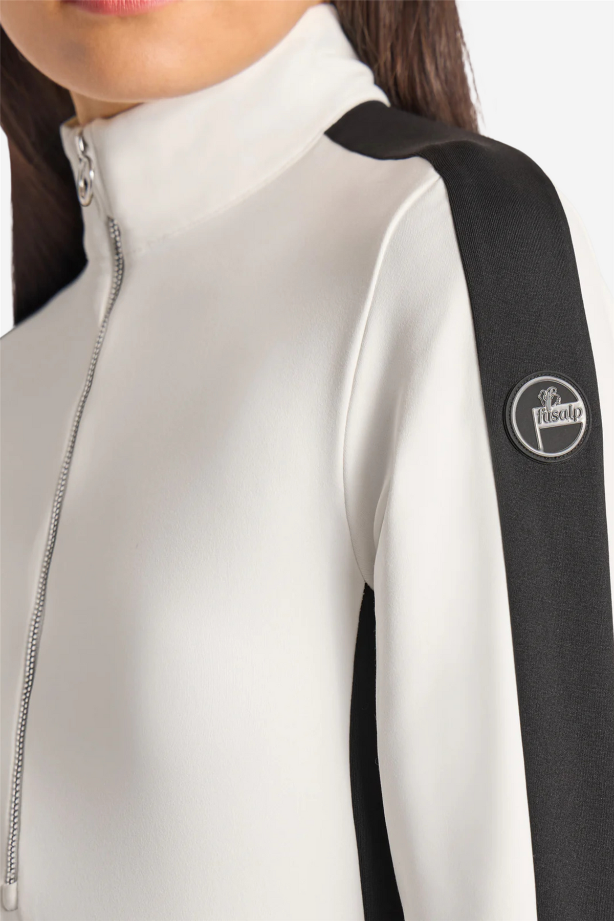 Negam skitrøye fra Fusalp. Negam er en tettsittende undertrøye med høy hals og glidelås, laget i et teknisk, børstet powerstretch-materiale. Den kroppsnære passformen gjør den ideell å bruke som mellomlag under en lett jakke eller kåpe. Et essensielt plagg i ski-garderoben, verdsatt for sitt komfortable materiale, varme og bevegelsesfrihet.